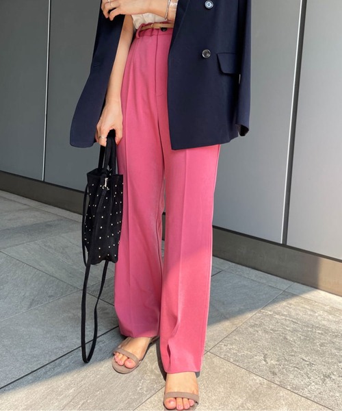 ♦秋らしいカラーの美シルエットパンツ 桃のような表面感と手触りのピーチ素材を使用したパンツ。 メンズのスラックスをイメージして、 レディースに落とし込んでいるのでカジュアルになりすぎないのもポイントです。 ハイウエスト過ぎないので、合わせるトップスを選ばず着られます。 センターに施したプレスで足長効果も抜群。 フリルなどのフェミニンなアイテムとも相性がよいです! 異なる色同士で組み合わせて、 配色のセットアップとして着るのもおすすめ◎ 同素材のドロップショルダージャケット(SNZ1012107A0003)と セットアップとしても着ていただけます。 ・女性らしく着こなせる脚長効果抜群パンツ ・同色で揃えるのはもちろん、異なるカラーの組み合わせでもセットアップできる優秀アイテム ・カットソーやブラウス、幅広いトップスと合わせやすい <おすすめスタイリング> ボーダーノースリーブカットソー(SNZ1011606A0004)や モッズコート(SNZ1012108A0001)との合わせがおすすめです。 - - - - - - - - - - - - - - - 透け感:なし 裏地:あり 伸縮性:なし 光沢感:なし 生地の厚さ:普通 - - - - - - - - - - - - - - - ※撮影環境により、光の当たり具合で色味が違って見える場合があります。 あらかじめご了承下さい。 ●お気に入り登録のおすすめ● ≪気になるアイテムを登録≫ ハートをクリックしてお気に入りに登録すると 完売カラーの再入荷やラスト1点の通知、セールの通知を受けとることができます。 ≪ブランドを登録≫ 新商品や再入荷など、いち早くブランドの情報を受けとることができます。