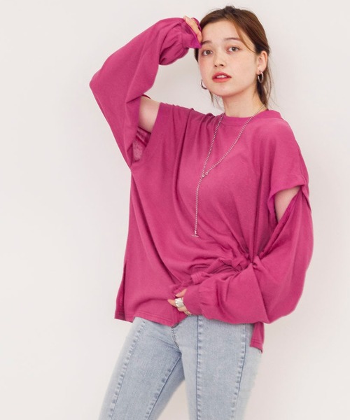 トレンドと実用性を兼ね備えた2WAYスリーブ!ダブクロで大人気の2WAYアイテム。今回は袖部分が2WAY仕様のTシャツアイテムが登場です。スリット入りでトレンド感あるロングスリーブと、袖を腰巻きして涼しげなノースリーブを楽しめる一着。ロングシーズンお使いいただけるのはもちろん、羽織を持たずに温度調節可能な優秀アイテム。シンプルで着こなしやすく、カラバリ豊富な注目アイテムです。スタイリングシンプルTシャツのように様々な着こなしを楽しめます。スカートにもパンツにも好相性◎。スリットがヘルシーな肌見せを楽しめて、カジュアル過ぎず大人な女性を演出してくれます。ネックレスをプラスしてコーデに華やかさをプラスするのもおすすめ。羽織合わせもしやすいので、ロングシーズン活躍すること間違いなし。※商品の色はimageの着用写真ではなく、商品写真をご参照ください。--------------------裏地:なし透け感:あり厚さ:薄め伸縮性:あり--------------------【お買いものにおすすめの便利機能!】★商品のお気に入り登録完売カラーの再入荷の時や、ラスト1点の時、セールになった時にお知らせします。★ブランドのお気に入り登録商品や再入荷、セール情報など、いち早くブランドのお得な情報を受け取ることができます。ぜひご活用ください!