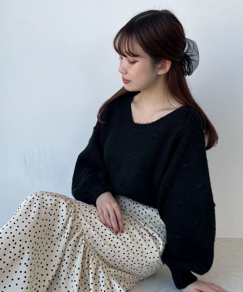 ●バックリボンで後ろ姿も可愛く● ぽこぽことした立体的なドットデザインが可愛らしいニット。 ボリュームのあるスリーブやバックネックのリボンも、スタイリングをレディライクに演出してくれます。 デイリーにはもちろん、デートなどのシーンにも活躍してくれるアイテムです。 ■洗濯 洗濯:洗濯機洗い可 洗濯:ドライクリーニング可 タンブル:不可 アイロン:可 ■仕様 透け感:なし ポケット:なし 裏地:なし 伸縮性:あり ※サンプルにて撮影を行っております。 ※実際にお届けする商品と仕様やサイズが異なる場合がございます。 ●Instagram● 新作情報の配信やSLURR企画会議なども実施中! ぜひ@slurr_prもチェックしてみてください♡ ●SLURR● (スラー) WEB限定ブランド(ZOZOTOWN STRIPECLUB)日常をちょっとHappyに! SNSとファッションに敏感なひとのためのトレンドカジュアルブランド。 ファッションを通じて 持続可能な未来へ続くための「サステナブル」 誰かの力になるための「支援活動」を行っていきます。 ▼ 商品のお気に入り登録がおすすめです ▼ 商品ページ内のハートマークをクリック。完売時の再入荷や、最後の1点の通知、コーディネート画像がアップされたとき、お得なお値下げの際の通知を受ける事ができます。 【お知らせ】ページでも通知が確認できます。