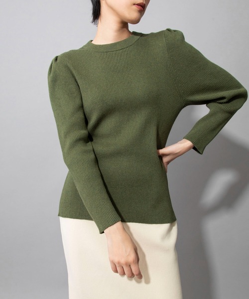 □2021 AUTUMN&WINTER COLLECTION□◆さりげないパフスリーブがオトナ可愛い!クラシカルなムード漂うニットトップス◆<MATERIAL>高級感のあるコットンカシミヤ素材を使用しています。毛羽立ちが減り、光沢感のある風合いが柔らかな高級感のあるコットンに、カシミヤをブレンドすることで、更に風合いを柔らかく仕上げました。また、製品編み立て時に通常より少し度甘に編み立て、製品縮絨加工を行うことで、よりふっくら仕上げ、ニットのチクチク感が苦手な方でも着用がしやすい心地よさを実現しております。12GGのリブ編みに編み上げ、透けの気にならない適度な肉感で伸縮性があり、くっきりとした縦の編地のラインで、細見えする女性らしい雰囲気の編地に仕上げました。<DESIGN>伸縮性のある編地を生かした、スッキリとしたタイトめなシルエットのデザインプルオーバーです。キュッと詰まった衿ぐりと、袖山に入れたタックがポイントで、クラシカルな雰囲気に仕上げました。程良く伸縮性のある編地なので、タイトめでもボディラインが目立つようなぴったりとしたシルエットではなく、程良いフィット感でストレスなく着用いただけます。可愛らしさとシャープさを兼ね備え、ニットならではの甘すぎない雰囲気で大人っぽく着こなせます。程よい着丈と細見えするシルエットで、ボトムスを選ばずに着回しやすいアイテムです。<COLOR>■ブラック:ベーシックなブラックは大人っぽい落ち着いたカラーです。キレイめスタイルにもぴったりです。■モカ:赤みを抑えた優しい印象のモカカラーです。品がよく女性らしくこなれた印象のあるカラーです。■カーキ:グリーン寄りのスモーキーなカーキです。カジュアルすぎずに女性らしくまとまる便利なカラーです。■レッド:あたたかさを感じる落ち着いたトーンのレッド。一枚で華やぐので、コーディネートのアクセントにぴったりです。*お取扱いについては、商品についております品質表示にてご確認ください。洗濯:手洗い可.............................≪INFORMATION ≫............................▼商品のお気に入り登録▼『♡』マークを押してお気に入り登録して頂いた商品は、セール開催の通知やクーポン発行などのキャンペーンなど、お得な情報をいち早く受けとる事が出来ますので、ぜひご登録ください。