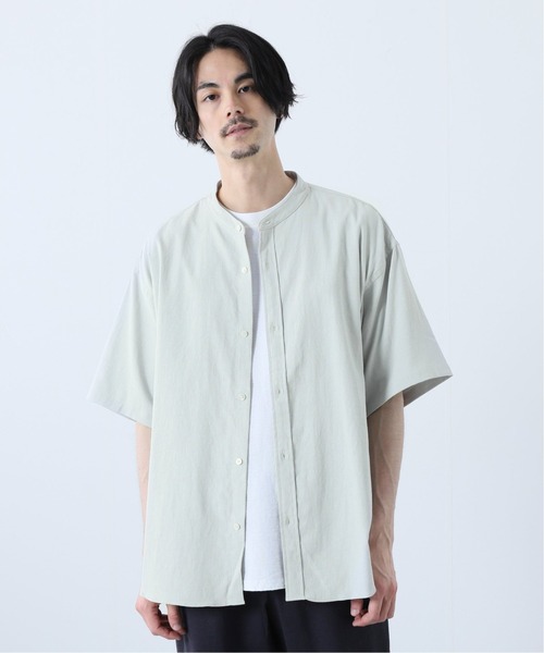バンドカラーのショートスリーブシャツ。 すっきりとした襟元が特徴のバンドカラーシャツ。 東レ開発の【BODYSHELL(R) / ボディシェル】を採用していて、ドライな肌触りで夏も快適に着用できます。 きれい目にもカジュアルにもコーディネートできる使い勝手のいいシンプルなデザインです。 ********************** ・裏地(なし) ・伸縮性(なし) ・光沢感(なし) ・生地の厚さ(普通) ********************** 洗濯:手洗い可