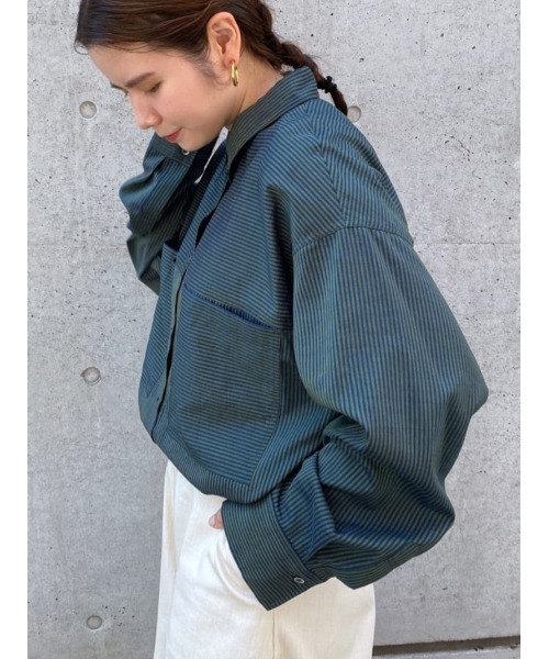 光沢のあるストライプ生地を、方向を変えて組み合わせた切り替えシャツ。ポリエステル100%でもともと少ししわ感があり、カジュアルな雰囲気です。ご自宅でお手入れ可能なのもうれしいポイント。ゆったり目の身頃で楽に着られます。グリーンとネイビーのストライプ生地の一色展開です。 【スタッフコメント】 JOUO BEARDSLEY 自由が丘 159cm 【tops】着用サイズ:F 秋口に活躍するカーキシャツ。 光沢のあるストライプ生地を、方向を変えて組み合わせ切り替えています。 洗濯 :クリーニング推奨 伸縮性:なし 透け感:なし 裏地 :なし 光沢感:あり 【商品をお気に入り登録しておきましょう!】 気になるアイテムは、ハートマークをクリックしておくことで、スムーズにお買い物が楽しめます。 ・ラスト一点のお知らせ ・再入荷のお知らせ ・予約商品が店頭に入る際にお知らせ ・SALEのご案内 ※写真はサンプルを撮影しています。実際の商品は仕様が異なる場合がございますので、ご了承下さいませ。 【アテンション】 取り扱いについては商品についている品質表示でご確認ください。 ※商品の色味は撮影場所や光の当たり具合によって違って見える場合がございます。 またお客様ご使用のパソコンモニター環境などによって違って見える場合がございますので 予めご了承の上ご注文ください。 ※ご注文いただいた予約商品のお届け時期の確認は、注文履歴ページより行えます。 ※残り1点から完売となった場合でも店舗にて商品のご用意がある場合、 再入荷の予定がございます。ご了承ください。