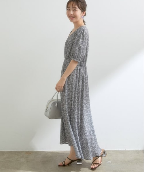 【デザイン・シルエット】小花柄がポイントのプリントワンピース。ハイウエスト切り替えにしている事で、ウエスト部分がすっきりとし脚長効果出るようにしています。着用中ストレスを感じないように、後ろにゴムを入れているため1日中のお出かけでもストレスフリーで着ていただけます。また、附属でスカート丈のペチコートが着くので透けも気にせずに着用できます。【素材】夏にさらっときていただけるポリエステル100%。【カラー】柔らかなライトグレー・ベージュ・ピンクの3色展開。【おす