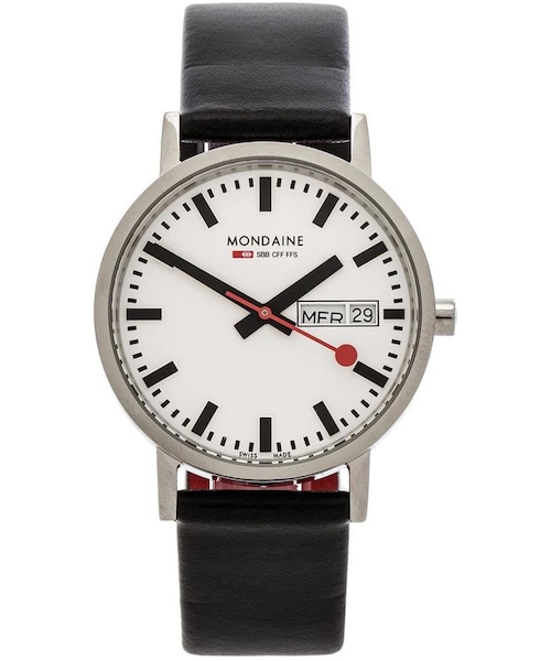 Genuine leather band with buckle closure Band width 18mm Case diameter measures 36mm Stainless steel backing Water resistant