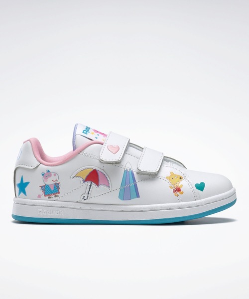 【リーボック公式ショップ】 ペッパピッグのグラフィックが楽しいリーボックシューズ。 ペッパピッグはあなたのキッズが大好きなアニメスター?明るい色のグラフィックが手で描かれたこのシューズを履けば、キッズは笑顔で大喜び。面ファスナーストラップで脱ぎ履きも簡単。これでキッズも大満足。 商品の特徴 ●シンセティック素材のアッパー ●面ファスナー式のクロージャーストラップ ●テキスタイルライニング ●ペッパピッグのグラフィック ●© Hasbro ●キャラクター コラボレーション キッズシューズ 子供 運動靴 ●用途:スポーツウェア、部活、アスレジャー、スポーツミックス、通学に ●商品番号:GZ6488 (ホワイト) ※画像はサンプルのため、色味やサイズ等の仕様に変更がある場合がございます。 ※光の当たり具合や閲覧環境によって実際の色味と異なって見える場合がございます。