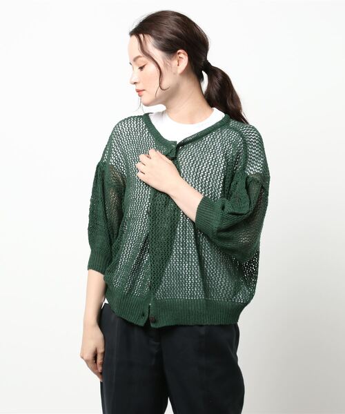 さらっと羽織るだけでニュアンスのある着こなしをメイクするカーディガン。前後どちらをフロントにしても着られる2WAY仕様です。シアーなメッシュがコーディネートに軽さを加える1枚。どんなボトムスとも馴染みやすく、合わせるだけで旬のコーデが叶います。