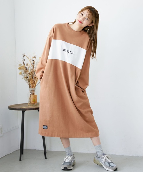 配色の切替デザインがポイントのワンピース ワンマイルのお出かけ、おうち時間にも! MILKFED.新宿 STAFF 身長:154cm********* 年齢:20代前半/普段サイズ:S 着用サイズ:ONE SIZE サイズ感:丈感は足首が見えるくらいなので、低身長の人でも着れます。身幅や袖はワイドですが、ストレートに落ちるシルエットなのでスッキリ見えます。 着心地:しっかりしている生地感。ややストレッチが効いているので動きやすいです。 オススメコーデ:スニーカーにもブーツにも合います。ウエストにベルトを巻いてアクセントを付けるのもおすすめです♪ ************************** ■バックの大きく入ったロゴプリントがアクセントになります ■ドロップショルダーでほどよい抜け感を演出 ■ややゆったりとしたオーバーサイズのシルエットでリラックス感漂う1枚 ■絶妙な丈感でどんなアイテムにも合う万能アイテムです 【スタイリング提案】 プリーツスカートやタイトスカートに合わせればガーリーなコーディネートに。チェックパンツやセンタープレスパンツと合わせると大人カジュアルにも応用できます。デニムパンツとも相性抜群。 ●シリーズ >>>BICOLOR TOP(103213013011) ・透け感:あり ・伸縮性:あり ・生地の厚さ:普通 ・裏地:なし ※白地部分で計測しています 【MILKFED.(ミルクフェド)2021 FALL COLLECTION】 【取り扱い注意事項】 素材の特性上、他の衣類との摩擦や汗・雨に濡れた場合、色にじみ・移染の恐れが有ります。濡れた場合は素早く拭き取り乾かして下さい。 ※画像の商品は光の照射や角度により、実物と色味が異なる場合がございます。 また表示のサイズ感と実物は若干異なる場合もございますので、予めご了承ください。 ※画像の商品はサンプルとなります。 実際の商品と色味、仕様、加工、サイズ、素材等が若干異なる場合がございます。 ■商品のお気に入り登録 商品のお気に入り登録をおすすめします。完売カラーの再入荷やラスト1点の通知を受けることができます。 予約アイテムが販売開始の際も通知を受け取ることができます。 ■お気に入りショップ登録 新商品や再入荷など、ショップニュースを、いち早くお届けいたします。