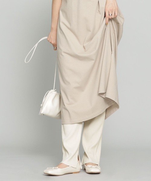 ■デイリーの着回しからおうち時間まで活躍■ 縦のリブが脚長効果を発揮するニットパンツ。動きをプラスする裾内側のスリットと、膝下からやや広がるセミフレアシルエットが今年らしいデザイン。ビッグシルエットのTシャツを合わせたり、ワンピースとのレイヤードスタイルもおすすめです。 ―DETAIL― ・レイヤードにも重宝するベーシックなリブパンツ ・動きをプラスする裾スリット ・スリットが広がると今年らしいセミフレアシルエットに ・着脱も着心地もイージーなウエストゴム仕様 ・デイリーの着回しからご自宅用まで幅広く活躍 ・店舗では買えない【WEB限定】アイテム ―FABRIC― ・ポコポコと表情のある組織が特徴のリブ素材 ・柔らかく肌馴染みが良い、ストレスフリーな着心地 ・透けにくい生地感 ・洗濯機使用可 ◆nano・universe◆ ■商品注意事項■ 蛍光増白剤が入っていない洗剤を使用して下さい。濡れたままの放置や、長時間の浸漬はしないで下さい。濃色と白・淡色物は分けて洗って下さい。ネットを使用して下さい。あて布を使用して下さい。洗濯後は形を整えて直ちに干して下さい。こちらの商品は水や雨に濡れたり、汗による湿気、乾燥状態での摩擦により色落ちし、薄い色の衣服などに色移りする可能性がございます。予めご了承いただき、ご使用の際にはご注意くださいますようお願い致します。 【マルチサイズとは】 豊富なサイズ展開のため、 「骨格ストレート/骨格ウェーブ/骨格ナチュラル」など様々な体型の方も、 自分に合った1枚が見つかる新しい洋服の買い方です。 「低身長~高身長」「やせ型~ぽっちゃり」など小さいサイズから大きいサイズまで、最大56サイズご用意しています。 定番アイテムから、ビッグシルエットなどのトレンドアイテムまで幅広く展開中! ※マルチサイズは、ZOZOTOWNのみでのお取り扱いになります。 ※サンプル品で撮影しているため、ボタンやファスナーなど一部の仕様が若干異なる場合がございます。