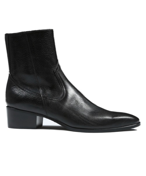 【ナチュラルなシボ感が特徴のエンボスレザーヒールブーツ】 GalaabenDでも特に人気の高いヒールブーツの新型がリリース。 2020 Autumn/Winterコレクションにて登場した、ハーネスリングブーツ[ブランド品番:87115902]の型を踏襲しており、主にアッパーの仕様が変更。 履き口からアンクル部分をタイトに仕上げることで、ホールド感が向上しました。 また、裾が細めのパンツでもアウトで着用しやすくなったのも嬉しいポイントです。 ヒールの高さは6cmから5cmへ変更し、履き心地・歩行性の向上も図りました。 つま先がアーモンドの様にほっそりとした形状になっており、美しく洗練されたデザインは、デニムからスラックスまで幅広いジャンルに対応。 美しいフォルムは職人の確かな技術に裏打ちされた証でもあります。 5cmのヒールが足を美しく長く見せる効果はもちろん、スマートなフォルムがコーディネートをスタイリッシュに演出します。 素材は型押しによるナチュラルなシボ感が特徴のエンボスレザーを使用。 ※マッケイ製法