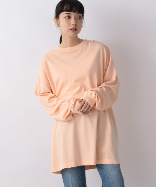 天然由来の草木染を施したロングTシャツ。◆デザイン着丈は長めに設定し、ゆったりとしたオーバーサイズのロングTシャツになります。袖口はリブにしてカジュアルさをプラス。◆スタイリングシンプルなデザインのロンTなので、ボリュームのあるスカートと合わせるのがおススメです。チュニック丈を生かし、トレンドのフレアパンツと合わせるとラインがきれいに出るのでぜひチャレンジしてみてください!!
