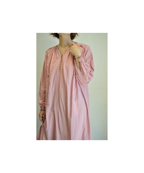 肩にスリットの入ったコットンレーヨン素材のワンピース。 懐かしの飴玉のような靄の入ったビーズボタンがビンテージな雰囲気を醸し出します。 後染めしています。 色違いにベージュあり。 ●商品一覧トップページはこちら↓ http://urx3.nu/LHHy