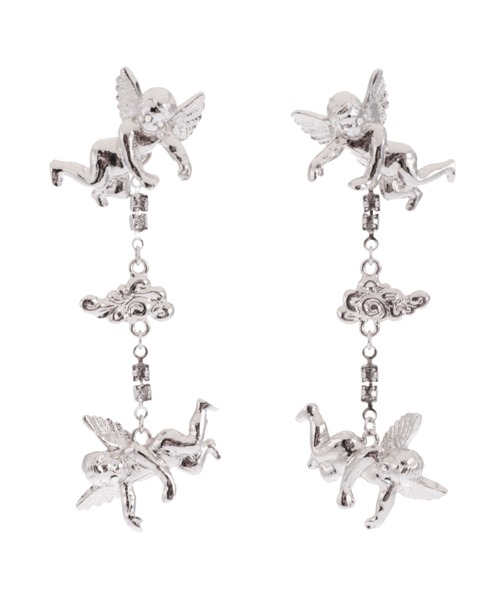 ■ポイント■今季のテーマ「天国」に因み、天使が天国を舞っているピアス。 ヨーロッパの教会のレリーフにもにもよく用いられる、雲のパーツを中間に繊細なダイヤレーンで繋げました。 肉感が可愛らしい天使の目にはビジューが埋め込まれており、よく見るとやや不気味で愛おしい顔つきをしています。 一番上の天使は別パーツに分かれており、天使単体でも、雲と天使をお手持ちのピアスにドッキングしても着用出来る仕様になっております。 神聖なゴールド、モードなシルバー、そして白い石像調の天使と雲は真珠の様なパーリィな輝きを放っています。 眺めているだけでも幸せな気持ちになる逸品です。 ■コーディネート■ 見た目よりも軽い付け心地でシーンを選ばず、シュールかつキャッチーなイメージも持ち合わせるワンランク上のジュエリーで、普段使いのポイントに。 また、ドレスアップ時はもちろんニットやTシャツなどのカジュアルなスタイルでも四季をを問わずに使い回せます。 付けやすいサイズ感とアイコニックなジュエリーはプレゼントにも是非おすすめのアイテムです。 【注意】 ご利用のモニターを通した場合と実物を直接ご覧になられた場合で 色調が若干異なって見えることがございます。 モデル着用画像は実際の商品と仕様が若干異なる場合がございます。 詳しくは、商品コメント内の仕様変更説明をご確認ください。 ▼気になるアイテムを登録 ♡をクリックしてお気に入り登録をすると 完売カラーの再入荷通知や、ラスト1点、セールの通知をお知らせします。 ▼お気に入りブランドに追加 新商品や再入荷等、いち早くPAMEO POSEのお得な情報を受け取ることができます。 ・最短で翌日お届け商品をカートに入れた後、 注文内容の確認ページで「即日配送」を選択していただければ、最短でご注文した翌日にお届け致します。 ※ご注文いただいた予約商品のお届け時期の確認は、注文履歴ページより行えます。 ---------------------------------------- PAMEO POSE 「カルチャーを着るパメオポーズ」 ”境界線の無いファッションスタイル” 遊び心のあるディティールや色使いのアイテムに、 トレンドをミックスした旬のスタイリングで、 “大人も着れる自分らしいジャンルレスなコーディネート“をお届けします。 ----------------------------------------