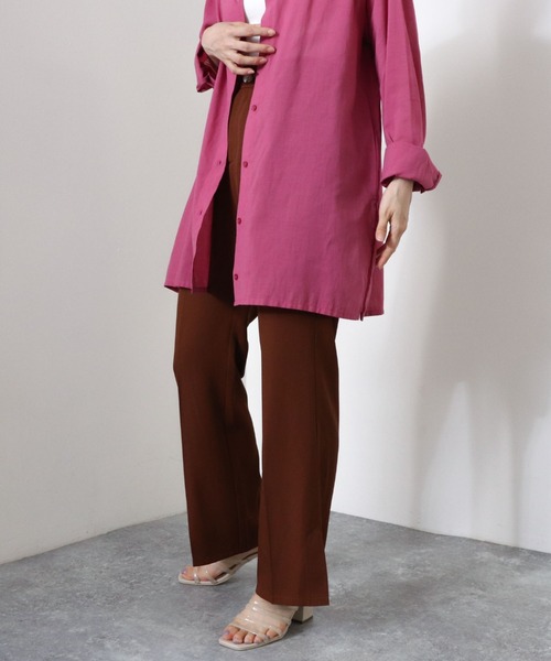 ■カラーで選べる定番パンツ■ archives定番のサイドスリットパンツはカラーで遊べるのが嬉しいポイント◎ 色々なコーディネートに合わせて頂けます。 【point】 ・サイドスリットの足首見えでスッキリと ・ストレッチの効いた素材でさらっと履いて頂けます ・ウエストゴムなのも嬉しいポイント 【detail】 ひざ下から程よくフレアになったパンツは一見ストレート見えするシルエット。 しかしフレアになっているおかげで美脚効果がプラスされています。 サイドに施されたスリットは押し首をチラ見せしてくれるので より一層足をきれいに見せてくれます。 サイドとバックにあるポケットは美尻効果も◎ 【fabric】 ストレッチがしっかり効いた素材感でストレスフリー。 シワにもなりにくい素材なので取り扱いもしやすい仕様。 ーーーーーーーーーーーーーーー 透け感:なし 裏地:なし 伸縮性:あり 光沢感:微光沢 生地厚さ:普通 洗濯方法:手荒い可 ※詳しいお手入れ方法は商品についているタグをご覧ください ーーーーーーーーーーーーーーー 【coordinate】 ベーシックなフレアパンツはカジュアルにもキレイ目にもお使い頂けます。 サイドスリットなので秋から冬にかけてはブーツを合わせてチラ見せさせるのも◎ Tシャツなどでカジュアルに合わせるのがおススメです♪ ※ご利用のモニター環境により、実際の色味と多少異なる場合がございます。 … information … 欲しいitemをお気に入り登録(♡マークをclick) ・お買いのがし対策…完売itemの再入荷やラスト1点の情報をお知らせ ・欲しいitemをお得にget…pricedownになったらいち早くお知らせ ・スムーズ検索…ZOZOのお気に入りアイテムページで簡単checkできるから、再検索不要♪