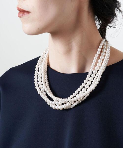 様々なサイズのパールモチーフを用いた表情豊かな5連のネックレス。コンパクトにまとまる長さでTシャツやスウェットのカジュアルなトップスとのコーディネートがおすすめ。見ため以上に軽く付けやすい点も魅力的な一品です。【注意事項】※商品を使用前に、タグ等に記載されている「取り扱い上の注意書き」、「洗濯表示」を必ずご確認ください。※商品画像は、光の当たり具合やパソコンなどの閲覧環境により、実際の色味と異なって見える場合がございます。予めご了承ください。※商品の色味の目安は、商品単体の画像をご参照ください。店舗へお問い合わせの際は、全国のUNITED ARROWS各店舗まで下記の品名/品番をお申し付け下さい。品名:UWFM 5STATIONS F/PL CHOK 品番:1733-699-0420