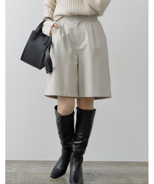 [2021A/W COLLECTION][低身長サイズ有]エコレザーで高級感のあるショートパンツ リアルレザーのような風合いのエコレザーが魅力のショートパンツ。 ひざ上丈で大人もきれるショートパンツに仕上げました。 高級感のある仕立て(ボタン・スナップ)にこだわり、抜かりのない一着に。 細身のトップスや綺麗めなニットにロングブーツでトレンドライクなスタイルが叶うアイテム。 カジュアルさとモードさを合わせた着回しの効くショートパンツです。 ■C(コンパクト)サイズ対応 身長150~155cmくらいの方でもバランスよく着ていただける丈感のリエディオリジナルサイズです。 ⇒お買い求めの際は「SHORT」をお選びください。 素材・着用感 柔らかく、若干の伸縮性があるヴィーガンレザー(合成皮革) ※開封後、素材の性質上、染料のにおいが多少強く感じられる場合がございます。 気になる場合は、数日のご使用や陰干しなどでにおいはほとんど感じられなくなりますのでお試しくださいますようお願いします。 ■モデル着用写真は撮影環境により、 多少実際のカラーと異なる場合がございます。 お気に入りショップにご登録いただきますと、 ショップニュースを、いち早くお届けいたします。