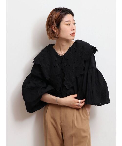 トレンドのフリルカラーを施したデザインシャツ■商品のお気に入り登録クーポンやタイムセール、再入荷通知やラスト1点などお得な情報を受け取ることができます。ご登録をお忘れなく◎■デザイン トレンドのフリルカラーを施したデザインシャツ。甘さのある刺繍とデザインで女性らしい1枚に。たっぷりとしたサイジングもポイント。■サイズ感 たっぷりとしたサイズ感でかなりのオーバーサイズに。スリーブ部分はゴム仕様なので好きなところでまくり上げる事もできバランスは調整しやすいデザインに。■スタイリング ボトムはメンズライクなデニムと合わせてミックススタイリングがオススメ。ブラウスとカジュアルスウェットのレイヤードも今季らしくオススメのスタイリングです。 ・・・・・・・・・・・・・・・・・・・・・・ 透け感:白のみややあり 裏地:なし 伸縮性:なし 光沢感:なし 生地の厚さ:普通 ・・・・・・・・・・・・・・・・・・・・・・