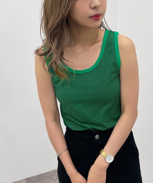 【大人っぽ!ミニョンのこだわりボーダータンク♥】 ピッチ幅が細いボーダータンク。 細いボーダーはカジュアルすぎることなく、 キレイめスタイルに合わせても◎ 更に、配色も大人めなので、 ボーダーが苦手な人にもオススメできる1枚◎ そのまま着ても良し、インナーとしても 着回しのできるシーズンレスなアイテムです♥ --------------------------------------- 生地の厚さ:★★☆☆☆ 透け感:なし 伸縮性:あり --------------------------------------- ※ご覧のモニター環境や撮影環境により実際の商品と多少色味が異なって見える場合がございます。 ご理解の程よろしくお願いいたします。 【お買い物をよりお楽しみいただく為に♪】 ▼商品のお気に入り登録をおすすめします ♡をクリック! 完売カラーの再入荷や、ラスト1点の通知、 セールの際の通知を受ける事ができます。 ブランドのお気に入り登録も ご一緒にお願い致します
