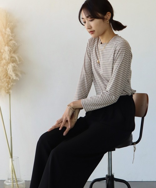 一枚あると着こなしの幅が確実に広がる、長袖ボーダーTシャツ デイリーに使えるボーダーリブトップス。 ロングシーズン着られる薄手のちょうどいい素材感。 カジュアルに見えすぎないような細めのボーダーにコーディネートのアクセントになるカラー展開が目を惹く、着回し力も着映え力も納得の一着です。 シーズンレスで使っていただける、カジュアルスタイルには外せないアイテムです。 [ コーディネート ] シフォン楊柳フレアーマキシキャミワンピース 53744108(ZOZO)542028-9701(店舗) ハイウエストテーパードデニム 58426382(ZOZO)542116-1788(店舗) ハイウエストワイドデニム 53679613(ZOZO)542016-8796(店舗) センタープレスタック入りテーパードパンツ 57111533(ZOZO)542116-1771(店舗) 淡水パールネックレス 57586705(ZOZO)512110-1643(店舗) ※濃色は色移りする場合がございますのでご注意ください。 【テレワーク映え・おうち服】 ・在宅ワーク/リモートワーク/テレワークでも活躍 ・リモート飲み会にも◎ ・ワンマイルのちょっとしたお出かけに [ 商品のお気に入り登録 ] 完売カラーの再入荷通知や、値下げのお知らせ、ラスト1点の通知などが受け取ることができます。 随時再入荷していますので、お気に入り登録して頂くと再入荷情報がGET出来ます。 [ ブランドのお気に入り登録 ] 新商品の発売や再入荷、タイムセールやクーポン発行のお知らせなど BLUEEASTのお得な情報を受け取ることができます。ぜひご登録ください♪ ※撮影環境により、モデル着用画像は実際の商品と色味が異なって見える場合がございます。 また、PCやスマートフォンの環境により画面上と実物では多少色が異なって見える場合がございます。 トルソー画像が実際の商品に一番近いお色となりますのでご確認ください。 ※製造の都合上、つなぎ目などにパターン(柄)のズレが生じる場合がございます。