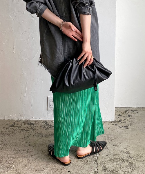 シンプルなスタイリングに合わせるだけで、ぐっとコーディネートを格上げしてくれる巾着バッグ高級感のあるヴィーガンレザーを使用。あえてワイドに広げるシルエットにすることで可愛らしくなりやすい巾着バッグを洗練された印象へ導きます。・存在感のあるデザイン・これ1点でコーデがおしゃれに仕上がる・ワイドなサイズ感で収納力も◎・ハンド、ショルダーの2WAYで使用可能※撮影場所やお使いのモニター環境により若干お色味が異なる場合がございます。特にロケの撮影では明るく見える傾向にございます。※商品はサンプルで撮影をしております。若干の仕様が変更になる場合がございますので予めご了承の上ご注文くださいますようお願いいたします。▼商品のお気に入り登録完売カラーの再入荷通知や、ラスト1点の通知、セールの通知も受け取ることができます。▼ブランドのお気に入り登録新商品や再入荷など、いち早くブランドのお得な情報を受け取ることができます。