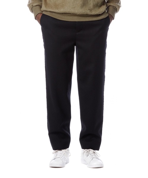 ※ FINAL PRICE DOWNになります!!! <再入荷致しました!> 横糸に上質なスーパー120s~130s相当のリサイクルウール糸を使用した、ゆったりテーパードシルエットのウールフラネルストレッチスラックスです。裏地で使用のキュプラ (ベンベルグ)は繊維自身が水分を含む (公定水分率11%)、呼吸する繊維です。湿・放湿性にも優れ、静電気も起きにくい、裏地に最適な素材です。また、アクセントで脇線始末は断ち切り仕様になってます。 ● 前カン仕様 ※ 画像の商品はサンプルです。実際の商品と仕様、加工、カラー等が若干異なる場合がございます。また特殊生地を使用の為、サイズ詳細と若干異なる場合がございます。