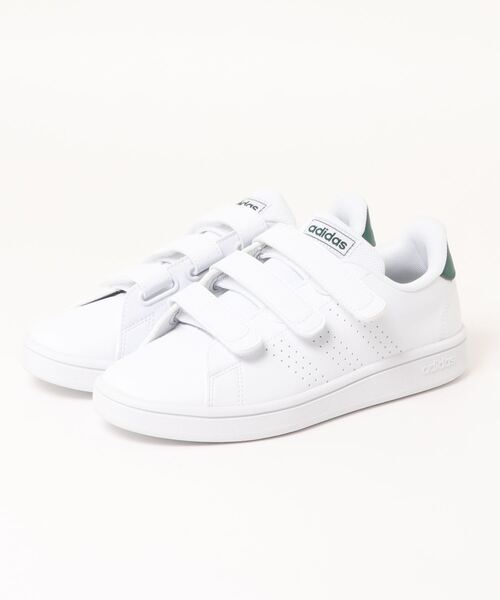 テニスシューズにインスピレーションを受けた定番人気の「ADVANCOURT」シリーズから、ついに3ストラップバージョンが登場! 滑らかなシンセティックレザーにパンチングのスリーストライプスを施した、オーソドックスなデザイン。3本のストラップでフィット感を調節できるうえ、脱ぎ履きも簡単です◎ ホワイトを基調としたクリーンなルックスに、カラーのヒールパッチが軽快なアクセントに。無駄を削ぎ落としたミニマルなルックスは、どんな着こなしにも取り入れやすく、洗練された大人のカジュアルスタイルを演出します。 清潔感のあるホワイトスニーカーは、ワードローブに1足は持っていたいテッパンアイテム! クラシックな雰囲気はそのままに、さりげなくエッジを効かせたディテールで、コーディネートに差を付けてくれるアイテムです。 ※展開サイズ:レディース ・素材:合成皮革 ・アウトソール:ゴム底 ・サイズ感:やや大きめ(個人差がございますので目安です)