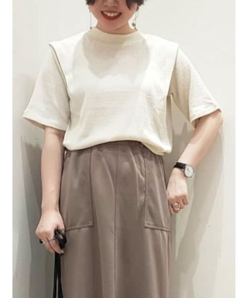 シャーリング天竺地が清涼感を漂わせるプルオーバー。 肩タックを入れることで華奢な印象に見せてくれる嬉しい効果も期待できます。 落ち着いたカラーで着回し力も高く、カジュアルにも綺麗めにもスタイリング出来るアイテムです。