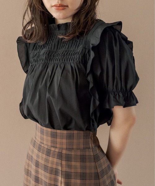 ピンタックとフリルがポイントのボリューム感たっぷり‼ 1枚で目を惹く主役級の儚げgirlブラウス♪ ■デザイン ・ガーリームードのピンタックとフリルがワンポイントに◎ ・後ろ姿まで全体的にフリルのついた華やかな印象になるブラウスです。 ・程よいお袖のボリューム感とフリルがコーデの主役になること間違いなし! ■カラー ・ベーシックカラー展開(オフ・グレージュ・クロ)になります。 ■素材 ・綿100%で着心地もよくこれからの気温にも大活躍。 ■スタイリング ・カジュアルなデニムスカートやフェミニンなスカートなど、幅広いボトムスと合わせていただけます。 ・ボトムを変えるだけで雰囲気の変わるブラウスで、 1枚持っておきたいおすすめのブラウスです。 ・1枚着としてはもちろんジャンスカやサス付きスカートなどのインナーに着る フェミニンな合わせも相性抜群! ----------------------------- 裏地:なし 光沢感:なし 透け感:オフややあり 伸縮性:なし 生地の厚さ:薄手 ----------------------------- model:165cm/162cm/156cm 着用サイズ:FREE ※着用、お取り扱いの際は、商品についている品質表示とアテンションタグを必ずご確認下さい。 ※ご覧のモニター環境や撮影環境により実際の商品と多少色味が異なって見える場合がございます。 ご理解の程よろしくお願いいたします。