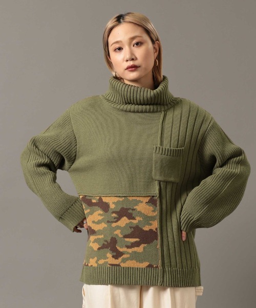 部分的に編地を変え、表情を出したタートルネックニットです☆ オフホワイトとブラックは同色系のカラー配色で目立ち過ぎず、面白みのあるアイテムに仕上がっています。 オリーブはフロントとバックの一部分にカモフラージュ柄を取り入れ、ブランドらしい個性的なアイテムになっています。 程よくゆったりとしたシルエットも可愛いポイントです☆ 【AVIREX Belle】 本格的なミリタリーウェアが持つ機能性とデザインをレディースカジュアルに投影したライン。 個性的かつ時代性のあるレディースブランドとして聡明、自由、好奇心、凛として快活な 働く大人の女性へ向けたレディスカジュアルを提案しています。 ※撮影時サンプルのため製品には変更点がございます。 ご了承ください。 ■お使いのパソコンのモニターによって、実物商品とカラーが異なって 見える場合があります。誠に申し訳ございませんが、ご理解下さいます様お願いいたします。 ■当ショップの在庫数は 直営店舗の商品も含まれています。在庫数が日々変動する為、ご注文頂いた時点で在庫が完売になっている場合がございます。 ■サイズ表は、製品の生地や織りなどの特性により、多少の誤差はございます。予めご了承ください。 【お買いものをお楽しみいただく為に!】 ▼商品のお気に入り登録 完売カラーの再入荷通知や、 ラスト1点の通知、セールの通知も受け取ることができます。 ▼ブランドのお気に入り登録 新商品や再入荷など、 いち早くブランドのお得な情報を受け取ることができます。