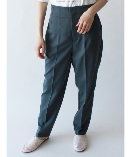 レッグラインを美しくすっきりと演出するパンツ。センタープレスの入ったきれいめな表情がきちんと感のある印象をプラスします。ウエストをきれいにみせてくれるバックゴム仕様で穿き心地も抜群。オンオフを問わずに活躍する、マストハブアイテムです。