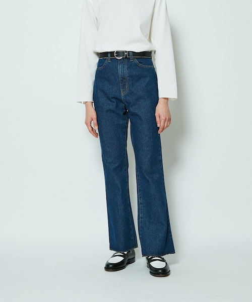 前回大人気だったアイテムがアップデート!デザイン、シルエット、穿き心地3拍子揃った万能デニム。・美脚効果抜群のフレアシルエット・ヴィンテージ感を感じさせるカットオフ・履き心地の良い柔らかい素材【生地・デザイン】前回大人気だったアイテムがアップデートし入荷。きれいなシルエットが魅了のデニム。緩やかに広がるフレアシルエットで、裾口はカットオフに。古着のような風合いで楽しめるデザインになっています。後ろのライン切替が、さり気ないアクセントになっていて、デザイン性もある目からも楽しめる1着。デニムですが、程良い厚さで柔らかい生地なので履き心地良く、オールシーズン楽しめるのもポイント。ハイウエストでスタイルアップ効果抜群の1着です。【コーディネート】美シルエットを活かしたシンプルなスタイリングがおすすめ。シンプルなtシャツにタックインスタイルで潔いデニムコーデに。シルエット・デザインともにぞんざい感のある1着なので、シンプル過ぎない仕上がりに。すっきりとしたシルエットなので、レイヤードスタイルにも最適です。オーバーシルエットや、着丈の長いものもバランス良く着れます。