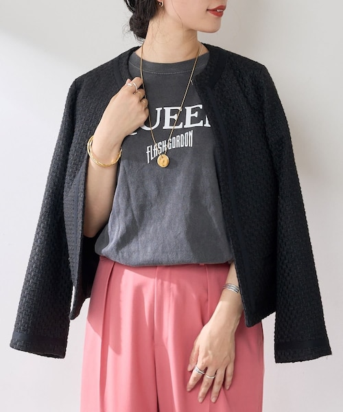 【2021 Autumn&Winter Pre Order】♦ヴィンテージ感のあるツイードジャケット目がしっかり詰まった、編地にも表面感のある雰囲気のジャケット。カーキには、金糸が織り込まれていて高級感も。プリントTにパールのネックレスとデニム合わせがオススメ。カラーは大人な雰囲気のカーキ、クールに決まるブラックの2色です。・ツイード素材が女性らしく上品な印象に・羽織るだけでクラシカルな雰囲気漂う1着・カジュアルなコーディネートに合わせると今年っぽい着こなしに<おすすめスタイリング>センタープレスデニムパンツ(SNZ1012103A0002)や総針ニットタイトマキシキャミワンピース(SNZ1011209A0003)との合わせがおすすめです。- - - - - - - - - - - - - - -透け感:なし裏地:あり伸縮性:なし光沢感:なし生地の厚さ:やや厚め- - - - - - - - - - - - - - --------------------------------------------------------------------------------- 【♡をクリックでお気に入り登録】完売カラーの再入荷やラスト1点の通知、セールの通知を受けとることができます。-------------------------------------------------------------------------------- ※撮影環境により、光の当たり具合で色味が違って見える場合があります。 あらかじめご了承下さい。