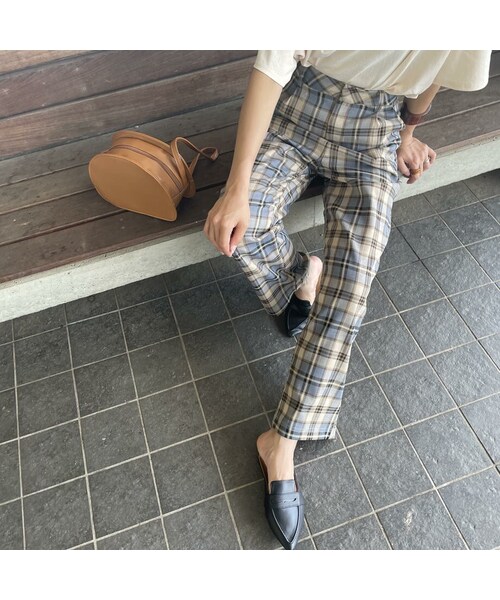 大人女子にぴったり!長め丈チェックパンツです。 ほど良いリラクシングなシルエット。 スタイリングUPのタック入りなので体型もすっきりときれいにカバーしてくれる魅力的なアイテム! サラッとしたやや薄手の肌触りのいい生地なので今の季節からも着用頂けます。 Tシャツ合わせやロンT、ニットベストなどカジュアルスタイルに相性抜群の一枚です!