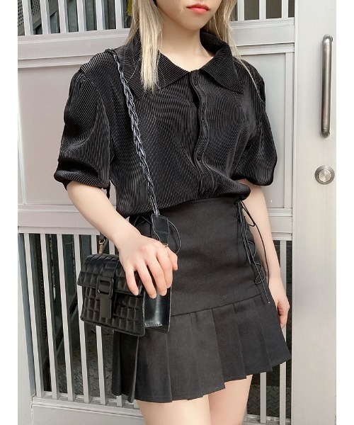 光沢のあるクリスタルプリーツ生地を使用したボタンシャツ。大きめの襟やパフスリーブなどガーリーなデザインもプラス。デニムボトムスでカジュアルダウンしたスタイリングもオススメです。《お気に入り登録》・「商品のお気に入り登録」で再入荷通知や、ラスト1点の通知、セール通知も受け取ることができます。・「ブランドのお気に入り登録」で新商品や再入荷など、いち早くブランドのお得な情報を受け取ることができます。【Figments/フィグメンツ】ファッション、音楽、カルチャー。時代とともに変化を楽しむ者たちに向けた、 Realityを覆し、常識を壊すユニセックスファッションブランド。
