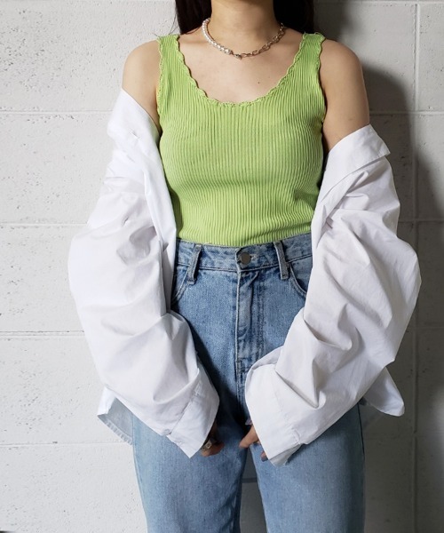 リラクシーなリブ生地にスカラップかぎあみをプラス。色違いでほしくなる、カラーがかわいい大人タンク。■ Point・さらてろっとしたリラックス&キレイなリブ素材。・ネックやヘムにスカラップかぎ編みをほどこし、大人カジュアルな印象に。・伸びが良くやわらかく身体にフィットしてくれるストレスフリーな着心地◎・デコルテをキレイに演出するUネックデザイン。・色違いで欲しくなる8色展開です。■ Detail 春夏のレイヤードスタイルに欠かせない大人のカラータンク。スカラップかぎ編みがカジュアルなデザインでフェミニンムードをプラス。飽きのこないデザインは着回しの効く優秀アイテムです。■ Fabric ・てろっとしたとろみと落ち感のある着心地の良いさらてろリブ素材。・伸縮性に富み、リラクシーでストレスフリー。・キレイめからカジュアルまで幅広いテイストでご着用頂けます。■ Coordinate・シアーシャツやカーディガンと合わせたトレンドなカジュアルスタイルや、夏のオーバーオールやワンピーススタイルのインナーとしても。【生地感】--------------------------裏地:なし透け感:なし生地の伸び:あり光沢感:ややあり--------------------------【me+em select (ミームセレクト) ZOZOTOWN お買い物ガイド】▼商品をお気に入り登録▼完売商品の再入荷やラスト1点の通知、セール開始時にお知らせ!▼"me+em select (ミームセレクト) "をお気に入りブランドに登録▼新商品や再入荷など、ブランド最新情報をいち早くお知らせ!是非、ご活用いただきお買い物をお楽しみください◎■他のキャンペーンにより、期間中に価格が変動する場合があります。■セールは予告なく終了させていただく場合もあります。■ご覧のモニター環境や撮影環境により実際の商品と多少色味が異なって見える場合がございます。ご理解の程よろしくお願いいたします。