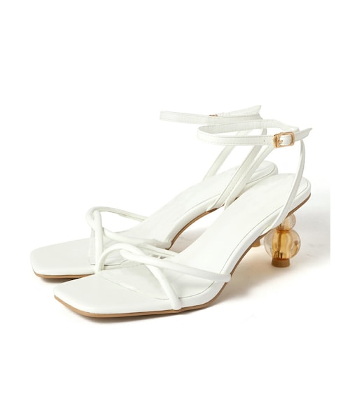 クリア素材のダブルボールヒールでトレンドをキャッチ。 上品なスクエアトゥでレディムードが漂う。 前後クロスにデザインされたナローストラップで華奢な足元を実現する。 全体を同色でまとめる事で、スッキリとした印象に。 ★低反発クッション入りです。