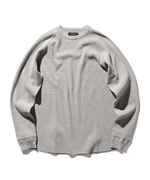 生地と細部にこだわったワッフル Tシャツ ベースレイヤーとしても1枚での着用としても重宝する<BEAMS PLUS>サーマル ロングスリーブ Tシャツ。裏地をフライス素材にし、通常よりも軽さと柔らかさを持たせています。凹凸のしっかりとした生地感が特徴です。 袖口のリブ編みはパターンに変化を付け質感を高めています。 Model:H 177cm W 68kg Size:M ※撮影環境による光の当たり具合やパソコンなどの閲覧環境によって、実際の色調と異なって見える場合がございます。あらかじめご了承ください。商品の色調は白背景商品単体で撮影した画像をご参照ください。 BEAMS PLUS / ビームス プラス ”長年着られる飽きのこない本物の男服”をコンセプトに、次世代へと続くカジュアルウェアのオーセンティックを追求しています。