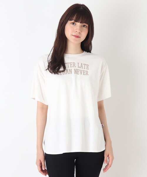 【デザイン】 ひんやりタッチが気持ちいい!!夏に大活躍するプリントTシャツ。 トレンド感のあるカレッジロゴと、使いやすい筆記体ロゴのアソート展開です。 カジュアルスタイリングの必須アイテム、着回し力◎なので色違いで持っていてもいいかもしれません♪ 【生地感】 USAコットンに接触冷感加工を施し、夏に嬉しい素材です♪ ※ナチュラル(050)・ホワイト(202)はやや透け感があるため、インナーの着用をおすすめします。 【サイズ】 大きいサイズ(LL)の展開あり。 ※04(LL)サイズはWEB限定サイズです。 モデル情報:身長168cm B75 W60 H87 着用サイズ:02(M) 店舗へのお問い合わせ商品番号:C62-13009 ●製品寸法: 02(M):着丈67cm B104cm 袖丈19cm 肩幅49cm 03(L):着丈70cm B107cm 袖丈20cm 肩幅50cm 04(LL):着丈72cm B110cm 袖丈21cm 肩幅50cm 備考: