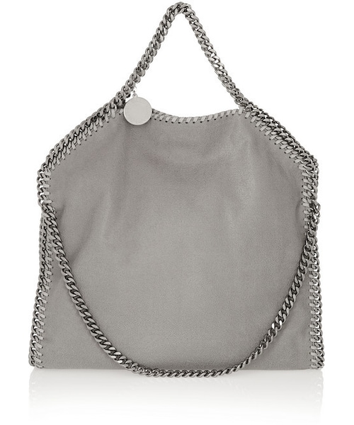Brushed faux leather finished with gleaming gunmetal chains - this light-gray 'Falabella' bag is signature Stella McCartney. Spacious enough for all your daily necessities, this slouchy style can be worn over-the-shoulder or folded into an oversized clutch. Light-gray faux brushed-leather Magnetic snap fastening at open top Comes with dust bag