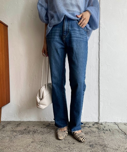 前後差のある裾がポイントのストレートデニム 脚のラインをキレイに見せてくれるすっきりとしたストレートシルエットのデニム。 足の甲にかかる前丈部分が抜け感をプラスしてくれます。 ・カットオフデザインがカジュアルでラフな印象に ・他にはない裾の段違いデザイン ・深めの股上で安心感も◎ ・カジュアルなニットやスウェットもちろん、シャツやブラウスの外しアイテムにもおすすめ ・1着持っていると万能に着まわせるデニム ********************** 透け感:なし 裏地:なし 伸縮性:なし 光沢感:なし ********************** ▼洗濯方法 液温は40℃を限度とし、洗濯機で非常に弱い洗濯ができる ※撮影場所やお使いのモニター環境により若干お色味が異なる場合がございます。 特にロケの撮影では明るく見える傾向にございます。 ※商品はサンプルで撮影をしております。若干の仕様が変更になる場合がございますので予めご了承の上ご注文くださいますようお願いいたします。 ▼商品のお気に入り登録 完売カラーの再入荷通知や、ラスト1点の通知、セールの通知も受け取ることができます。 ▼ブランドのお気に入り登録 新商品や再入荷など、いち早くブランドのお得な情報を受け取ることができます。