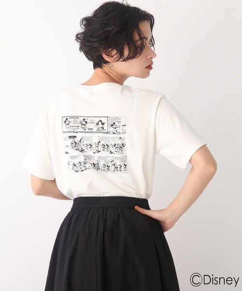 【ミッキー&フレンズ】国際フレンドシップデーにちなんだ限定アイテムを発売。ヴィンテージ感のある「ミッキーマウス」のアートをセレクト。大人も着れるラインナップです。バックに「ミッキーマウス」のコミックアートがプリントされたシンプルTシャツ【素材】コットン(綿)100%の涼し気な肌触りの良い生地を使用。カジュアル感のある程よい肉感なのですっきりと着用いただけます。【デザイン】フロント部分は「ミッキーマウス」の顔がワンポイントでプリントされ、シンプルなデザインですが、背中部分に大胆にコミックアートがプリントされていて、一枚で様になるデザインです。【こだわり】大人でも取り入れやすいヴィンテージな印象の「ミッキーマウス」のアートを使用しています。単色のカラー展開なのでどのボトムスでも合わせやすいデザインです。AG by aquagirl 限定アイテムです。※ホワイト(002)はやや透け感があるため、インナーの着用をおすすめします。こちらの商品は主に秋に着用いただける商品です。モデル情報:身長165cm B84 W62 H89 着用サイズ:38(M)店舗へのお問い合わせ商品番号:C12-13208●製品寸法:36(S):着丈61cm B95cm 袖丈20cm 肩幅43cm38(M):着丈62cm B98cm 袖丈20cm 肩幅44cm備考: