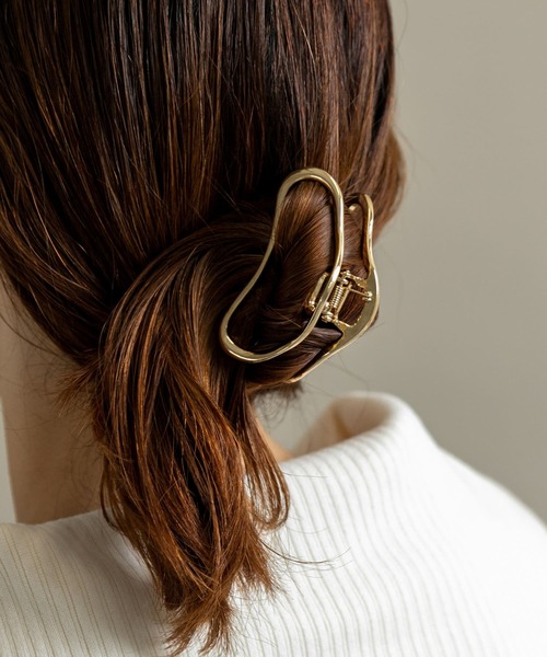 【艶感のあるメタル素材】 シンプルなメタルフレームのバンスクリップ。 艶感のあるメタル素材がシンプルなアレンジをこなれた雰囲気に。 ~おすすめヘアアレンジ~ 1.全体を三つ編みにしゴムで留め、毛束を引き出します。 2.三つ編みの毛先をくるっと上に持ち上げ、ゴムが見えないように、バンスクリップで留めます。 3.耳周りの髪も軽く引き出し、こなれ感のある涼しげなアップスタイルの完成です。 ※メッキ製品は変色してしまいがちです。こまめなお手入れで防止してください。アレルギー体質の方や体調が低下している方など、かぶれることがありますので十分にご注意ください。 ※アクセサリーは壊れやすいものです。取扱いにご注意ください。 ※その他お取り扱いに関しましては、商品に付属のアテンションタグをご覧ください。