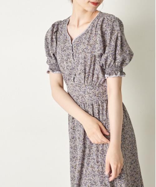 大好評の配色パイピングワンピースの新作が登場。 パイピング使用が目を惹くVネック! オトナ可愛く着れちゃうアソート花柄ワンピ。 ■デザイン・シルエット ・配色のパイピングで仕上げたVネックカラーが目を惹く1枚着ワンピ-ス。 ・長く着回しできるように5分袖でお作りしました。 ・着丈もいつもより長めになっているので大人かわいいく着こなせます。 ・バックウエストにシャーリングが施されており、後ろからのシルエットも綺麗に見えます。 ・ふわりと広がるAラインが綺麗なシルエットになっております。 ・袖のボリューム感がレトロな印象にも。 ■素材 ・程よく肌離れして夏でも心地よく着ていただけます。 ■カラー ・アソート花柄(ラベンダー・ブラック・ブラウン)の3色展開 ■スタイリング ・1枚で主役になれる今期トレンドライクなスタイリングが完成します。 ・カーディガンやアウターを合わせて長いシーズン着ていただけます。 ・夏はサンダル合わせまた、カンカン帽やクリアバッグなど、夏小物で清涼感をプラスしてもガ―リーな仕上がりに。 ・カジュアルにスニーカーやスポサン合わせも◎ ・秋に向けてブーツや合皮バック合わせでレトロ感アップ。 ----------------------------- 裏地 :あり 光沢感:なし 透け感:なし 伸縮性:なし 生地の厚さ:薄手 ----------------------------- model:165cm 着用サイズ:FREE ※着用、お取り扱いの際は、商品についている品質表示とアテンションタグを必ずご確認下さい 。 ※ご覧のモニター環境や撮影環境により実際の商品と多少色味が異なって見える場合がございます。 ご理解の程よろしくお願いいたします。
