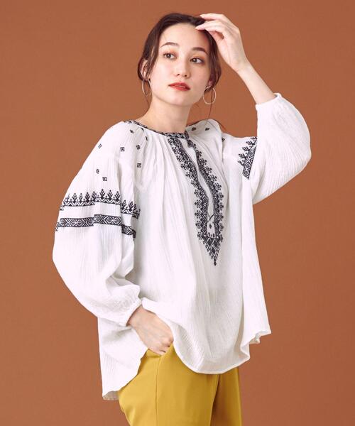 エスニックな雰囲気漂うスモックタイプのブラウス■デザインフロントやスリーブ、首元に繊細なモチーフ刺繍を取り入れたシーズンムードを盛り上げる一枚。ふんわりとしたスモックデザインにバックコンシャスなディティール使いが存在感を発揮し、女性らしさを引き立てます。シンプルな着こなしもサマになるシックなモノトーンでお作りしたことで、大人の女性に相応しい仕上がりです。■素材肌に優しく触れるやわらかな楊柳生地を使用した、エアリーな雰囲気の一枚。ナチュラルな透け感があり、インナー選びもお楽しみいただけます。■コーディネート発色の良いカラーアイテムを合わせたり、デニムやレギンスを合わせたシンプルなスタイリングもおすすめです。※商品の特性上、サイズに多少差があります。ご了承の上お買い求め下さい。◇同シリーズのワンピースもご用意しております。(品番:6926-699-0816)============================裏地:なし透け感:ややあり生地の伸び:なし光沢感:なしケア方法:手洗い可============================<Petit Oppulent(プチオピュレント)>「私が「私」を楽しむための服」をコンセプトに、趣味や娯楽、大人の女性がちょっとお洒落してお出かけしたいシーンに向けて今の気分を取り入れつつ、華やかさをプラスしたオリジナルシリーズです。<closet story(クローゼットストーリー)>フレンチシックとブリットモダンがテーマのオリジナル企画レーベル。若々しさと可愛らしさをもったエレガントなスタイルをベースに、都会的で今日を生きる女性が「自分らしさ」を大切にしたいときに揃えたいアイテムを提案します。【注意事項】※商品を使用前に、タグ等に記載されている「取り扱い上の注意書き」、「洗濯表示」を必ずご確認ください。※商品画像は、光の当たり具合やパソコンなどの閲覧環境により、実際の色味と異なって見える場合がございます。予めご了承ください。※商品の色味の目安は、商品単体の画像をご参照ください。店舗へお問い合わせの際は、全国のTHE STATION STORE各店舗まで下記の品番をお申し付け下さい。品番:6911-699-0356