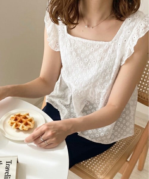 夏にぴったりな フラワーレースビスチェ。 1枚でおしゃれに決まる1枚です。 肩のフリルが二の腕を カバーしてくれるのも 嬉しいポイント。 Tシャツに合わせたり カーディガンやジャケットの インナーにするのも◎