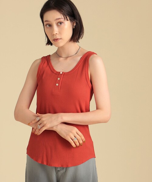 重宝するシンプルデザイン大好評タンクトップの新色が登場。程よく厚みのある生地なので1枚でも着用でき、肌寒い季節はインナーとしても使えるひと品です。前後2wayでどちらでも着用可能◎。オールシーズン使える、1枚は持っておきたいおすすめアイテムです。Model:H170 B79 W59 H86 Size:ONE SIZE