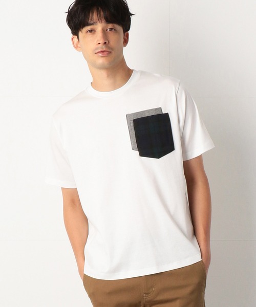 《デザイン》異なる2種類のチェック柄のポケットを、ずらして重ね付けしたダブルポケットTシャツ。 ラウンドした裾と、左脇に挟んだストライプテープがポイントです。 《素材》 細糸を使い、シルクのような光沢と、しなやかさを生み出す「シルケット加工」を施したスムース素材です。 シルケット加工は、糸の状態と、生地の状態の2工程で施しているため、通常の加工よりも高級感があります。 ※画像の商品はサンプルとなりますので実際の商品と仕様、加工、サイズが若干異なる場合がございます。 ※こちらの商品はFIVE FOXes独自の採寸方法となっています。 本サイトのサイズガイドと採寸方法が異なる場合がありますのでご了承ください。