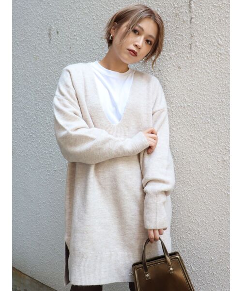 【2021 Autumn Collection START】 ゆったりシルエットがリラックスムード満載のニット◎ ■アイテム 包み込むようなゆったりとしたシルエットと、柔らかなタッチがリラックスムード漂うアイテム。 メランジ染めが独特のMIX感を出し、こなれ感のある印象に。 お尻まで隠れる丈感がスタイルカバーになり、嬉しいポイントです。 深めのVネックがロンTやタートルネックなどのレイヤードさせたスタイリングがオススメ! ■スタイリング カジュアル: ロンTやタートルネックをレイヤードさせたカジュアルなスタイリングがオススメ! 長いチュニック丈なので細身のパンツとの相性抜群です。 女子会・デート: フレアスカートに合わせた今年らしい着こなしがオススメ◎。 メランジ染めのMIX感が女子会やデートなどのシーンにもカジュアルになりすぎない印象に。 【 知って得する便利機能◎ 】 ♡商品のお気に入り登録 再入荷時、ラスト1点の時、セール開始時にお知らせします。 ♡ブランドのお気に入り登録 新商品やセール情報など、いち早くお得な情報をゲット! ぜひご活用ください!