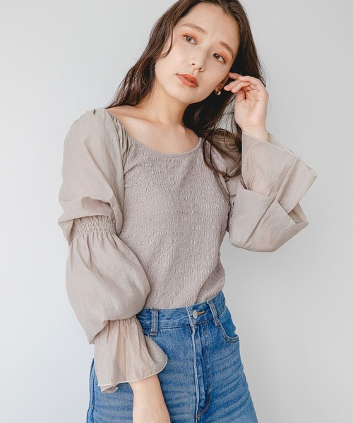キャンディスリーブの自然な袖ボリュームが特徴♪ 着るだけで女子っぽを纏えるアイテムです! ■point ・シアー生地の袖で軽やかな雰囲気 ・袖と身頃の異素材がポイントに ・デコルテがすっきりきれいにみえる開き具合 ■styling フェミニンなアイテムなので、フレアパンツやデニムなどのカジュアルアイテムとの合わせも相性抜群です。 さらっと程良い厚さの生地でサス付きアイテムのインナーにも活躍してくれます。 デコルテ部分がきれいにみえるので、ネックレスも映えて◎ 【INFORMATION】 ■商品のお気に入り登録 完売していても再入荷時に再入荷通知を受け取ることができますので、是非ご登録ください! ■ブランドのお気に入り登録 新商品や再入荷などの情報を受け取ることができますので、是非ご登録ください! ※撮影環境により、光の当たり具合で色味が違って見える場合があります。あらかじめご了承ください。