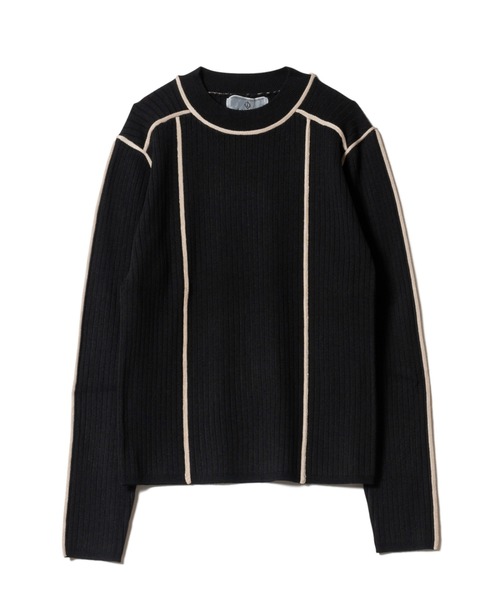インナー使いとして抜群の着回し力を発揮するFrame knit(フレームニット)。程よく体に沿うリブ編みをベースに随所に配色ラインをオン。細く見える視覚効果と360度ポイントになるデザイン性はこの秋冬のマストアイテムです。