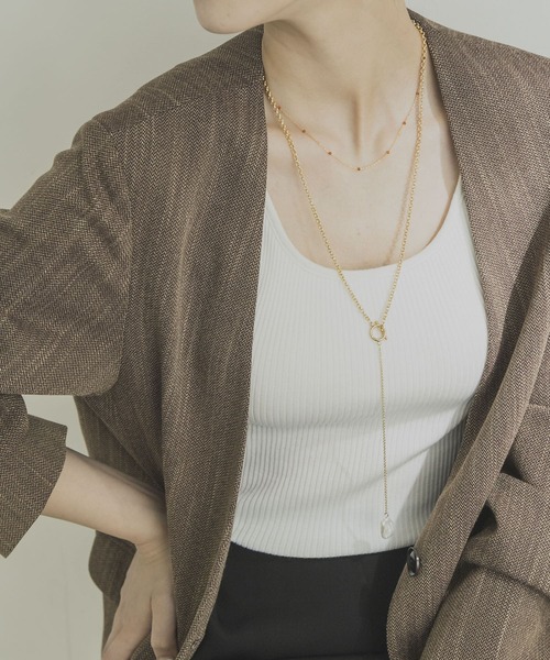 シンプルながらも長めのデザインで存在感のあるネックレス。トップのバロックパールがポイント。お手持ちのアイテムとの重ね付けもオススメです◎※商品画像は、光の当たり具合やパソコンなどの閲覧環境により、実際の色味と異なって見える場合がございます。予めご了承ください。※商品の色味の目安は、商品単体の画像をご参照ください。